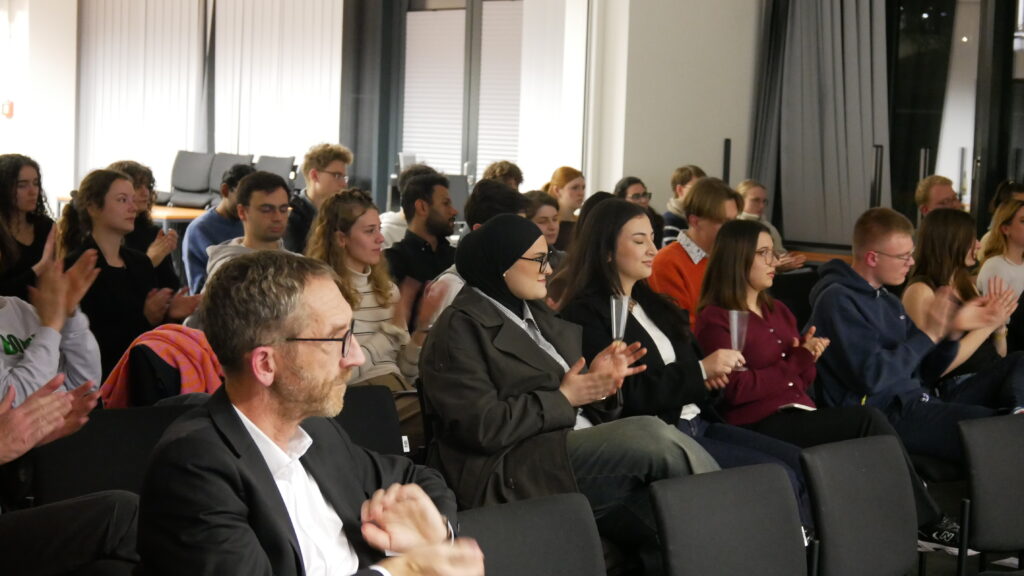 Ab 19.10 Uhr teilen Zahra Khan (Refugee Law Clinic Freiburg e.V.) und Hatal Satilmis persönliche Geschichten, die den Abend besonders prägen. Khan berichtet von den Folgen ihres ehemaligen subsidiären Schutzstatus: davon, wie sie sich auf einem Klassenausflug, bei dem die Gruppe kurz die Landesgrenze überschritt, plötzlich wie eine Straftäterin fühlte – während andere unbeschwert den Tag genossen. Auch nachdem sie später die Staatsbürgerschaft erhielt, hatte sie das Gefühl, sich ständig beweisen zu müssen.